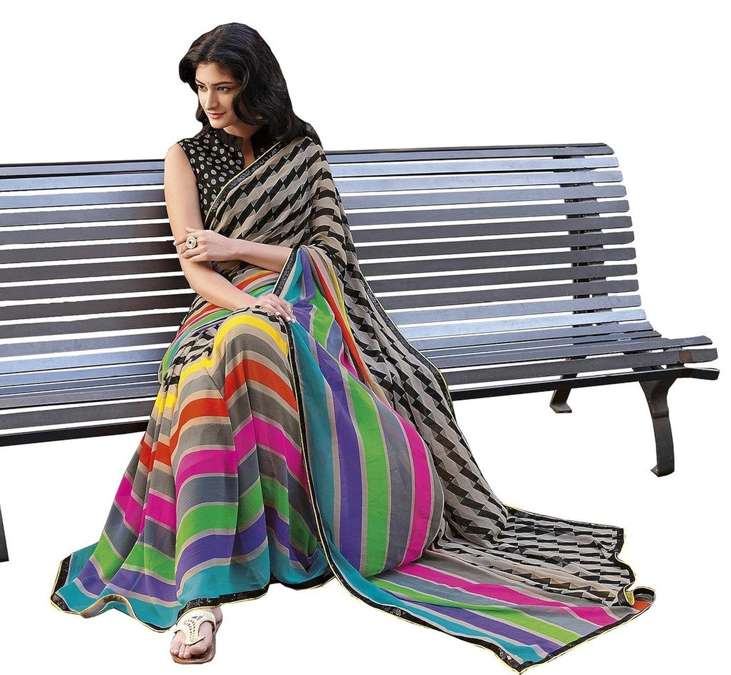Trendz Women's Multi Color Georgette Saree(RAINBOW COLOR)
